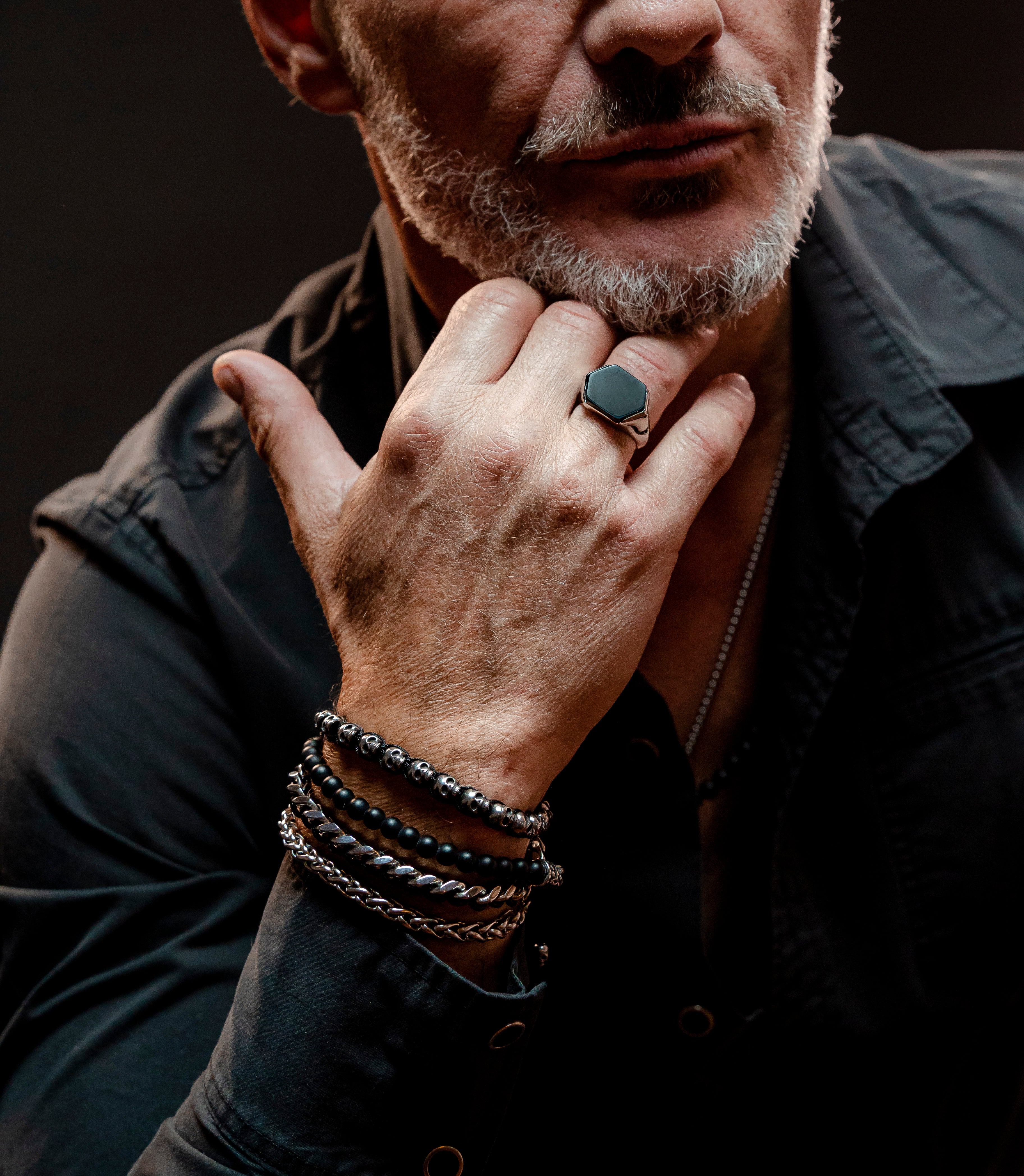 We believe every man has a unique style. That’s why we offer a personalization service that allows you to adapt our pieces to your identity: choosing stones, finishes, and details that transform a jewel into an authentic reflection of your character.