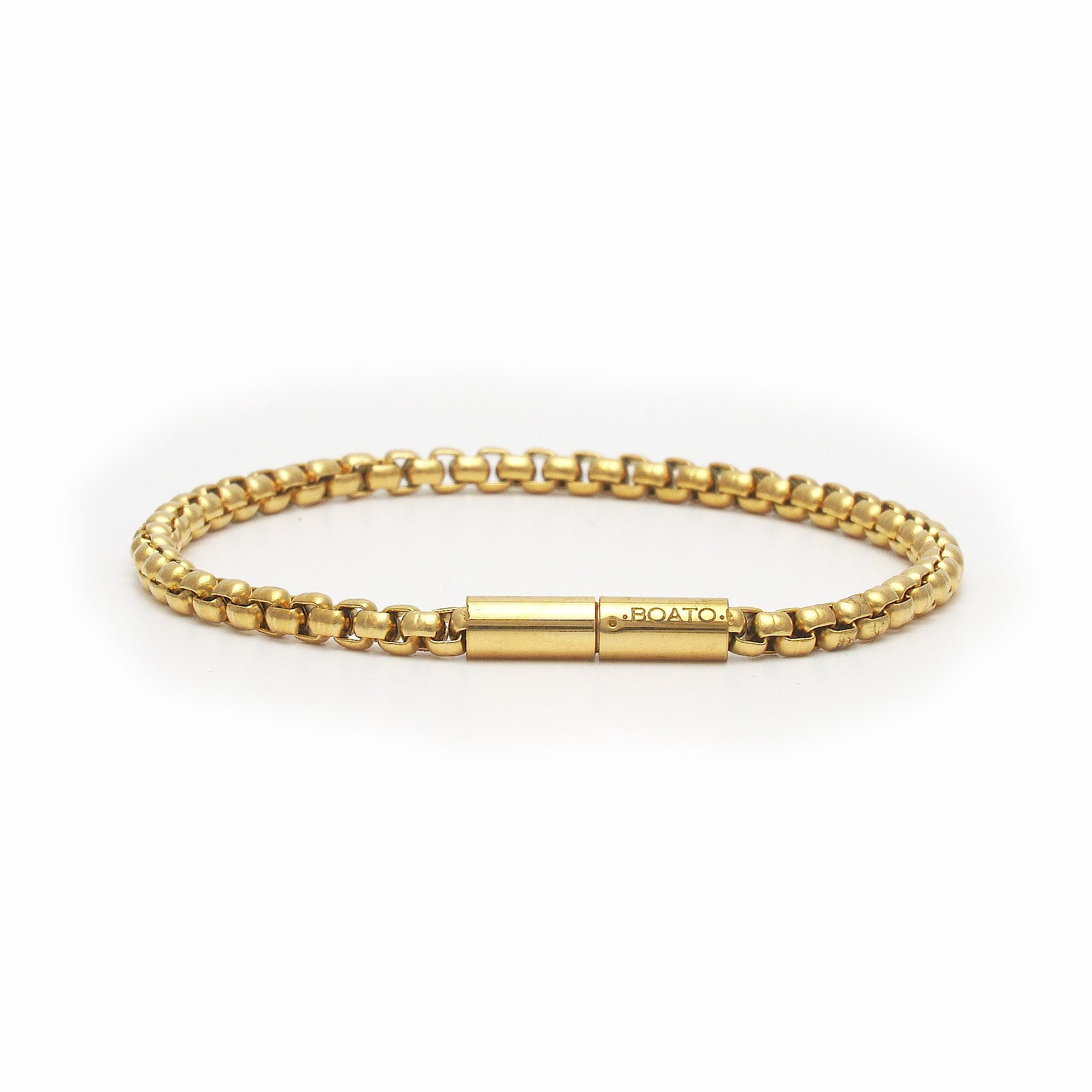 Elegance at its finest: this 316L steel bracelet with an 18k gold PVD finish embodies sophistication and confidence. Its minimalist and refined design adds a modern touch, making it the perfect accessory for those seeking a discreet yet distinctive style. A detail that conveys power and distinction on any occasion.