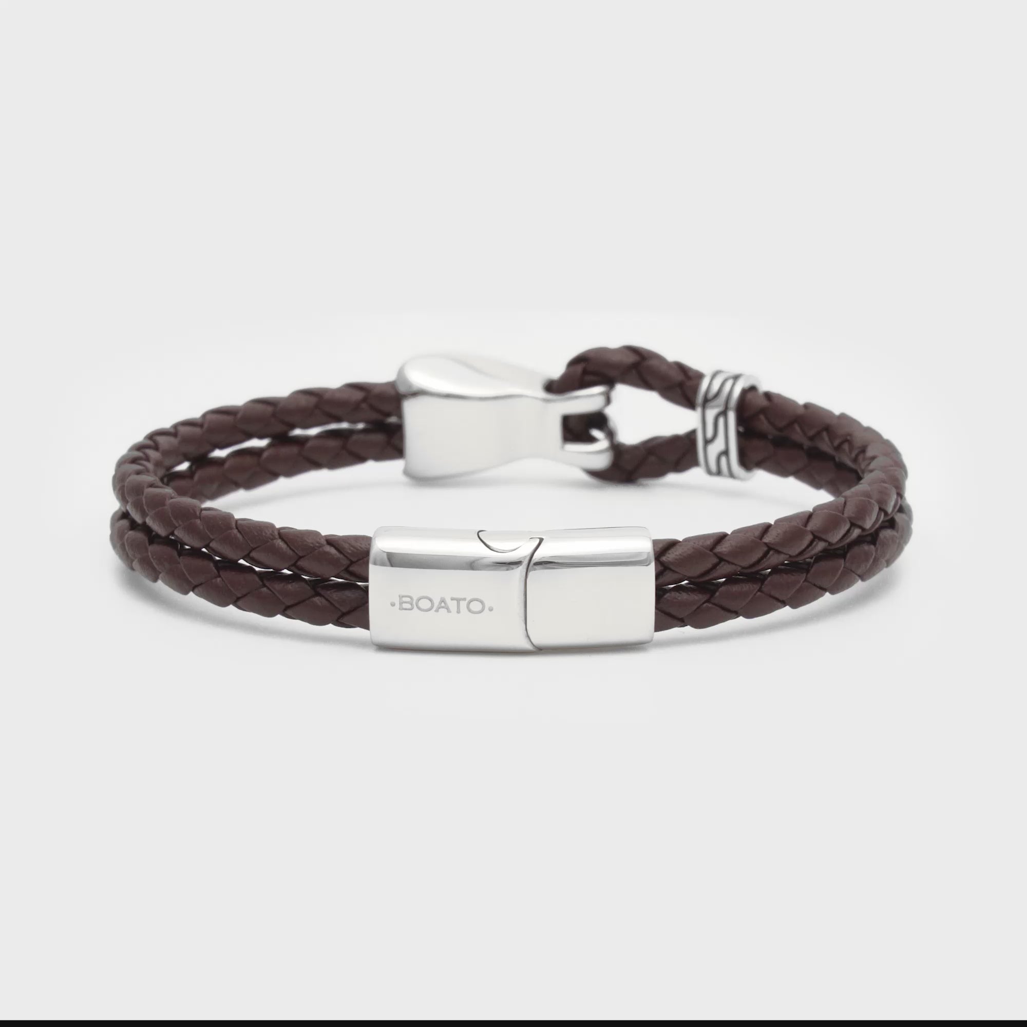A bracelet that combines a modern style with a nautical spirit. The double braided leather in brown conveys freshness and authenticity, while the anchor-shaped detail in 316L steel and the magnetic clasp enhance its elegant and contemporary design. Created for the man who seeks to project confidence and personality, this piece becomes the perfect accessory to stand out with a distinctive touch on any occasion.
