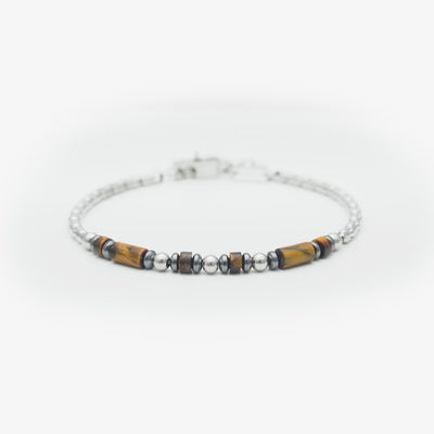 This bracelet embodies the perfect balance between sophistication and natural strength. Featuring tiger’s eye stones, known for their golden-brown reflections that symbolize confidence and determination, it creates a subtle yet powerful aesthetic. The sleek contrast of polished 316L steel with natural stones makes it an ideal accessory for men who value modern style with a touch of energy and refinement. Its lightweight and versatile design ensures it stands out in both casual and formal occasions.