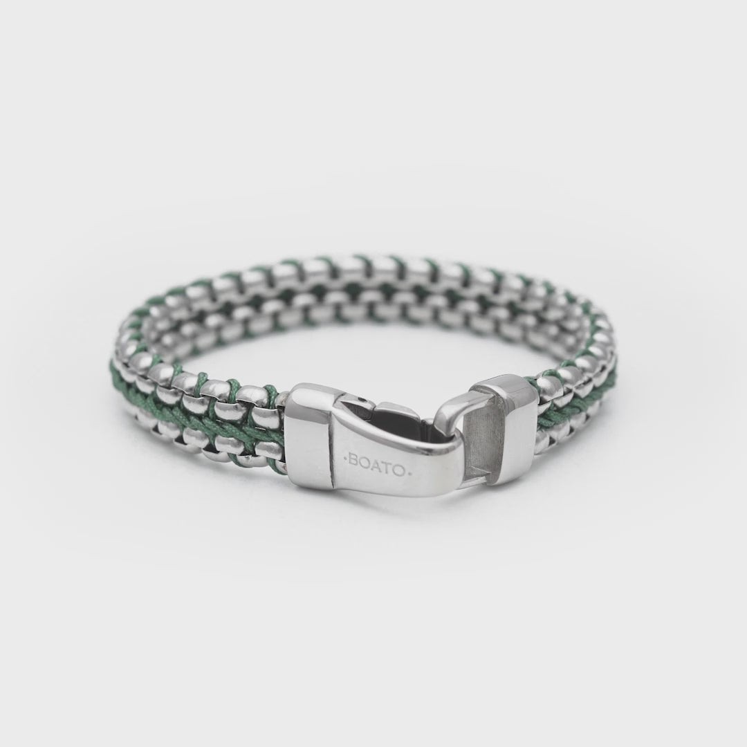A bracelet that embodies freshness, strength, and contemporary style. The contrast between polished 316L steel and the green nylon symbolizes balance between power and vitality. Perfect for the man who wants to project confidence, positive energy, and a modern yet refined look.