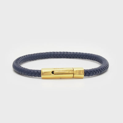 A bracelet that conveys energy, passion, and sophistication. The blue braided leather reflects strength and determination, while the gold-finished 316L steel magnetic clasp enhances its modern and elegant character. Designed for the man who seeks to stand out with confidence, this piece becomes a bold accessory that projects personality and style on every occasion.