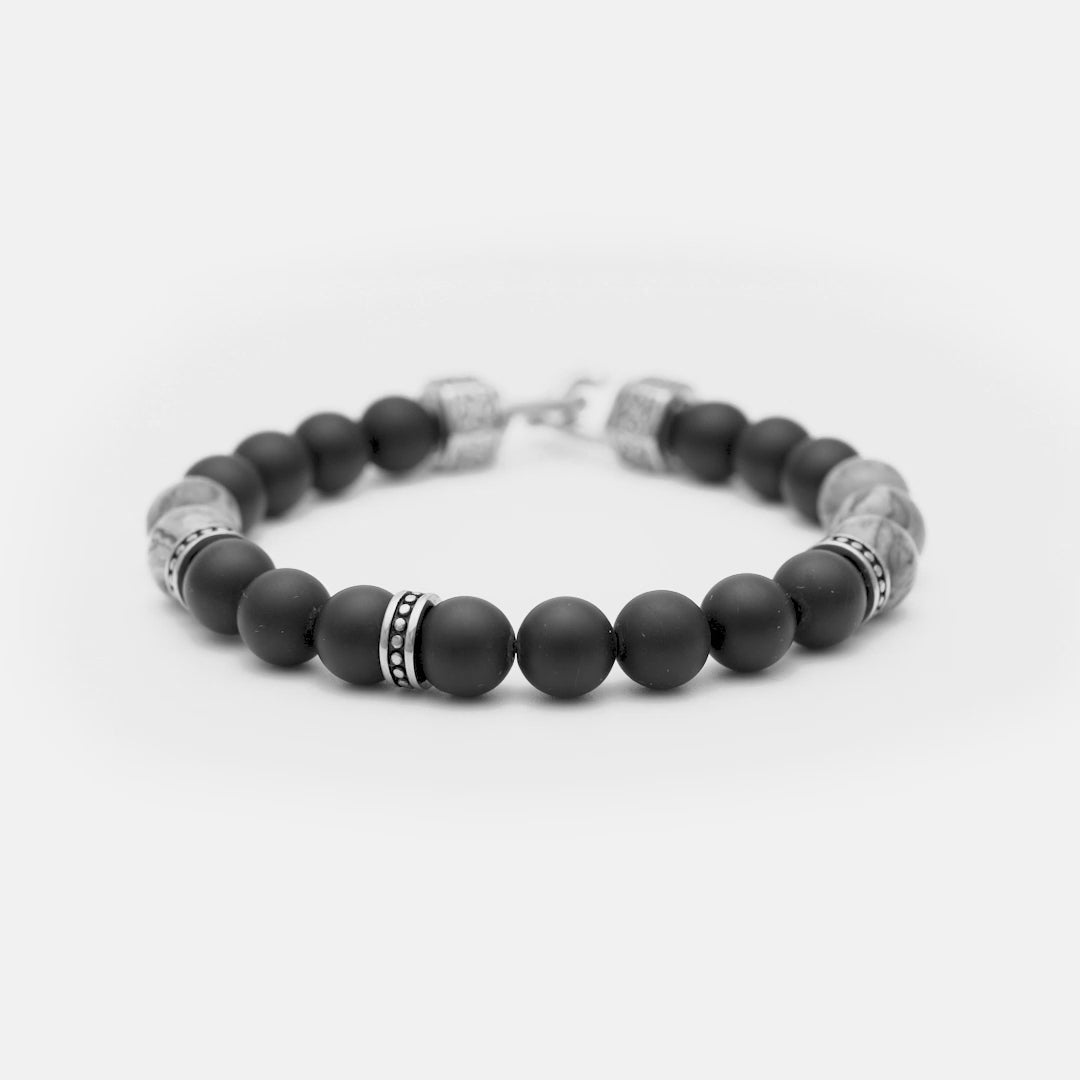 The deep black and gray intensity of each stone in this bracelet evokes confidence, serenity, and sophistication. A piece crafted for the man who seeks to stand out with style, projecting balance and strength in every detail. The natural tones of the stones connect with the power of nature, while the stainless steel accents enhance its modern and distinguished character. Perfect for those who want to showcase elegance with a unique and authentic touch.