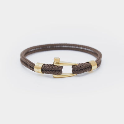 Inspired by contemporary nautical aesthetics, this bracelet combines the earthy tone of brown with the understated luxury of gold. Its double braided cord conveys stability and balance, evoking inner strength and a grounded spirit. A piece that reflects masculine character, elegance, and calm — perfect for those who appreciate subtle details that express power without excess.