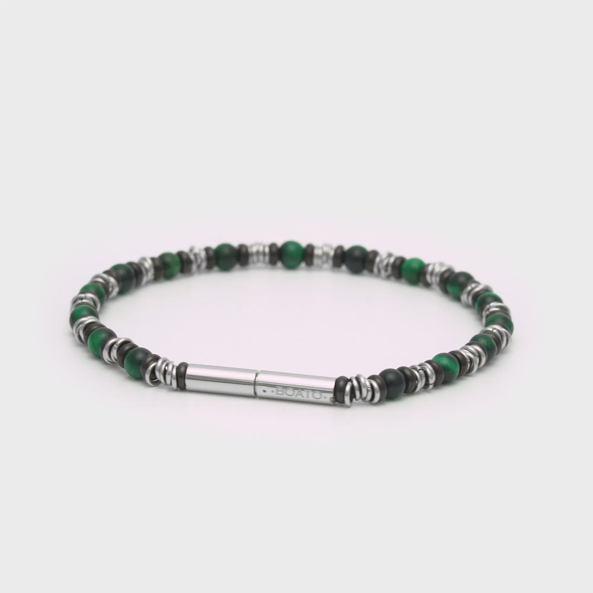 A bracelet that balances strength and style in every detail. The green and black stone beads convey sobriety and character, while the 316L steel accents add an elegant shine, making it a versatile accessory. Designed for the modern man who seeks to stand out with subtlety, this piece doesn’t just complement your look it communicates confidence, personality, and sophisticated style on any occasion.
